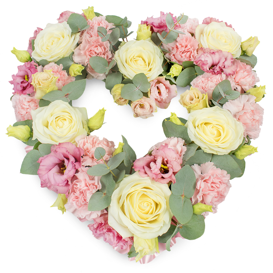 Provide a meaningful and elegant tribute with our delicate open heart flower arrangement.